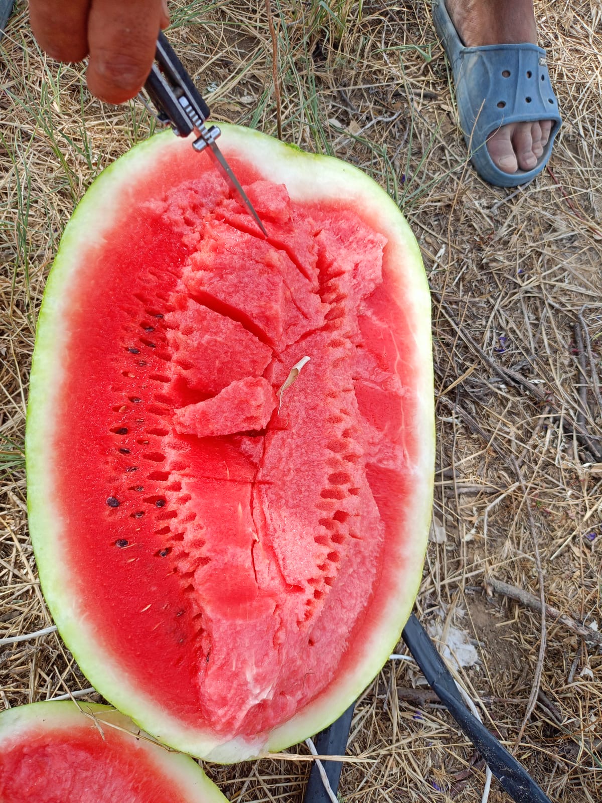 - Мякоть красная, плотная, хрустящая, очень сладкая;